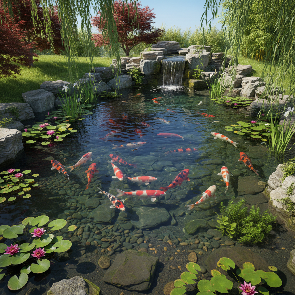 • Acque Cristalline: Utilizziamo tecnologie avanzate di filtraggio biologico e meccanico per mantenere l’acqua limpida, permettendoti di ammirare ogni sfumatura cromatica delle tue Koi.