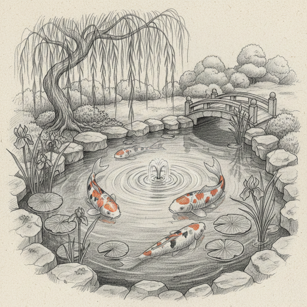 • Design Emozionale: Dalle sponde in pietra naturale ai camminamenti a pelo d’acqua, ogni dettaglio è pensato per creare un dialogo armonioso tra il movimento dei pesci e l’ambiente circostante.