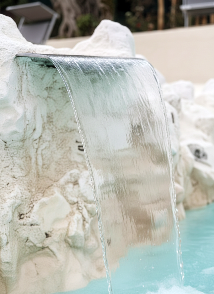 • Microclima e Relax: Durante le giornate calde, l’evaporazione generata dai giochi d’acqua rinfresca naturalmente l’aria circostante, aumentando il comfort dell’area relax.
