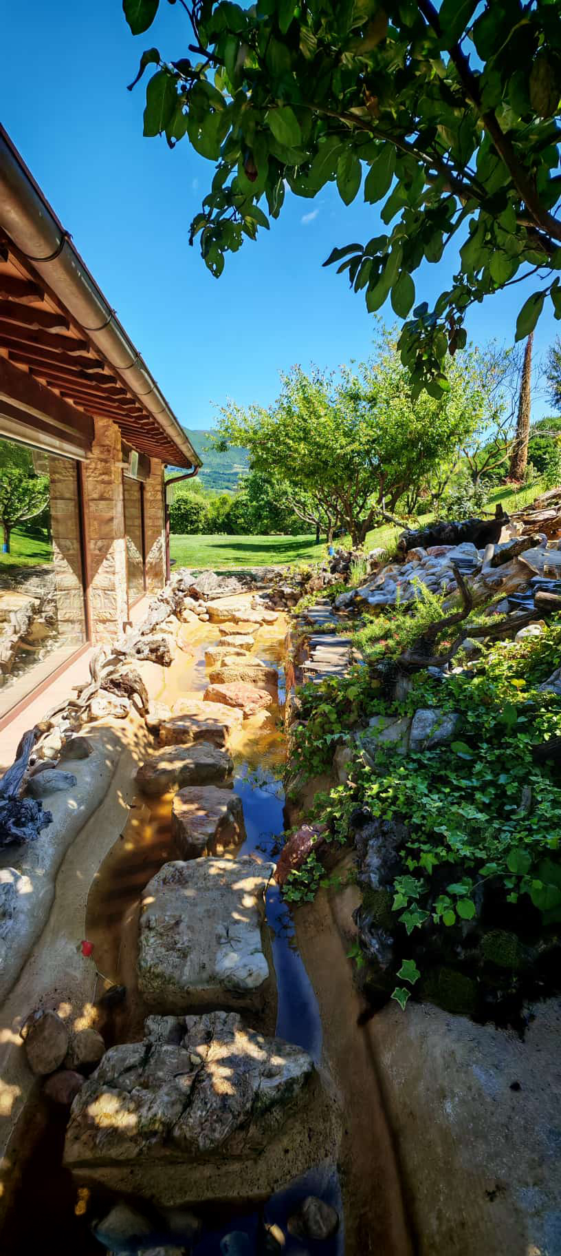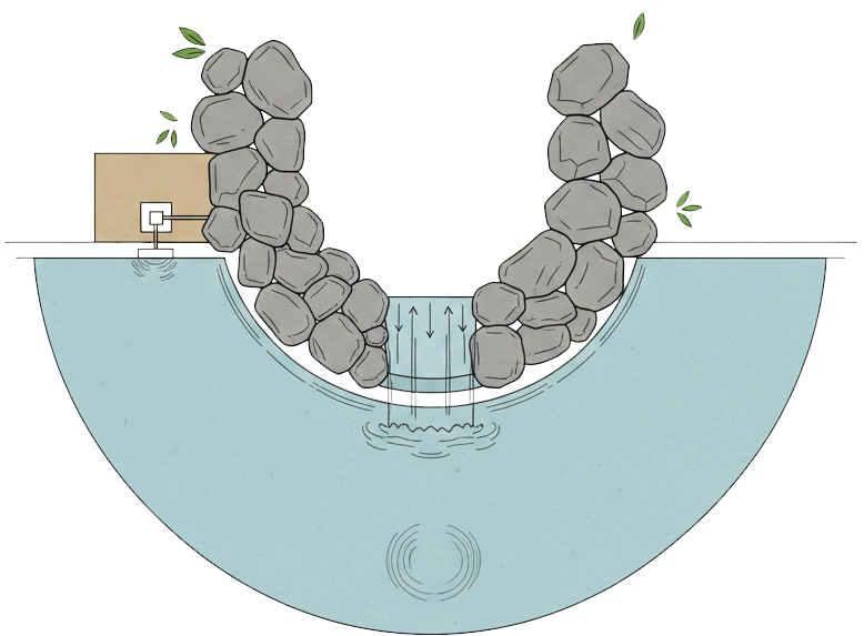 • Ossigenazione e Salute: In laghetti e Koi Pond, una cascata non è solo decorativa; il movimento dell’acqua favorisce lo scambio gassoso, mantenendo l’ecosistema sano, limpido e ossigenato per piante e pesci.