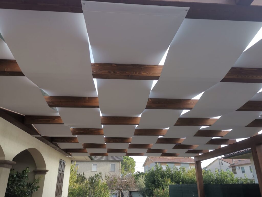 • Coperture Tecniche: Utilizziamo tessuti nautici, PVC oscurante o lamelle orientabili (bioclimatiche) per gestire luce e ventilazione in modo naturale.